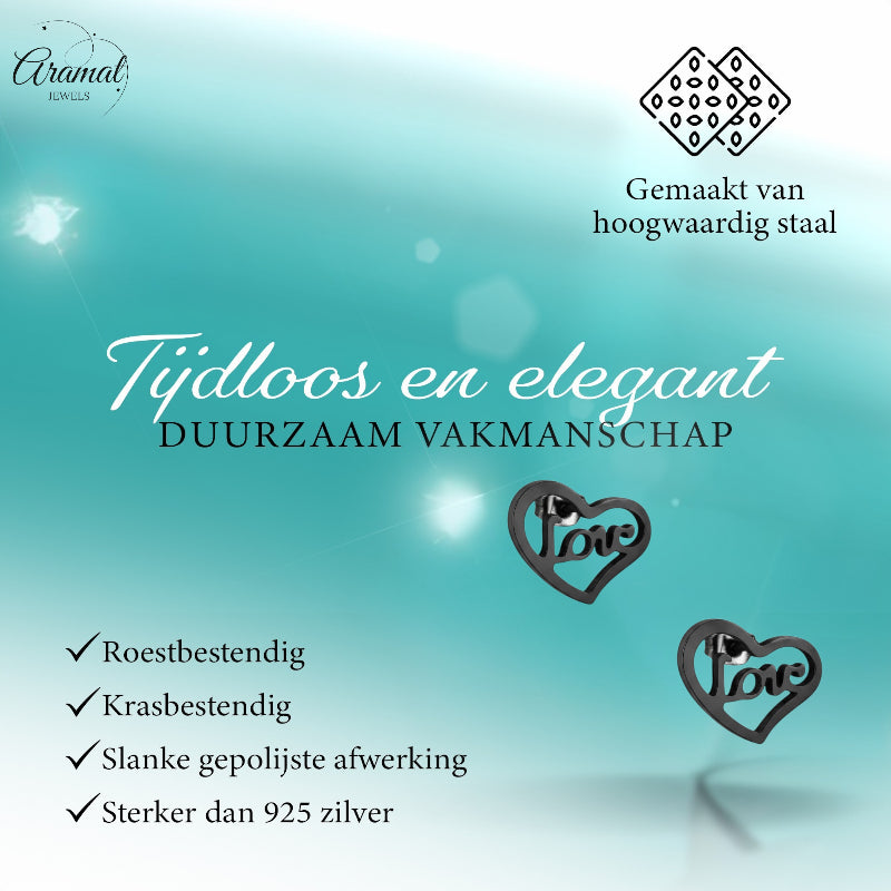 Op zoek naar stoere oorbellen die liefde uitstralen? Deze stalen hartjes oorbellen van 9mm combineren een open hartje met de tekst "love" in trendy zwart ๐คโจ. Ze zijn gemaakt van roestvrij staal (RVS), hypoallergeen en perfect voor dames en kinderen.