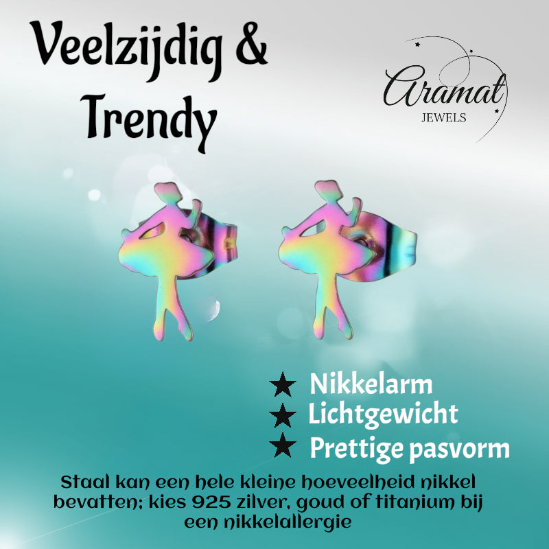 Boucles d'oreilles ballerines en acier inoxydable 12x7mm multicolores - Puces d'oreilles danseuse de ballet