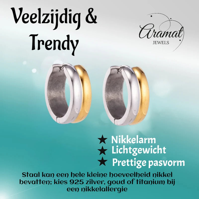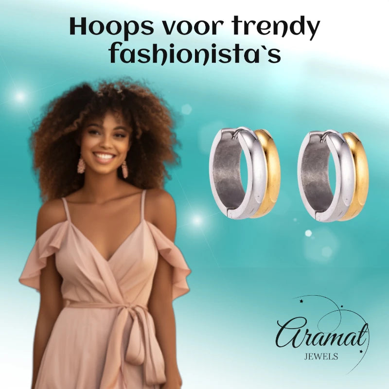 🌟 Boucles d'oreilles bicolores en acier inoxydable – Mélange de couleurs or et argent (13/20 mm)