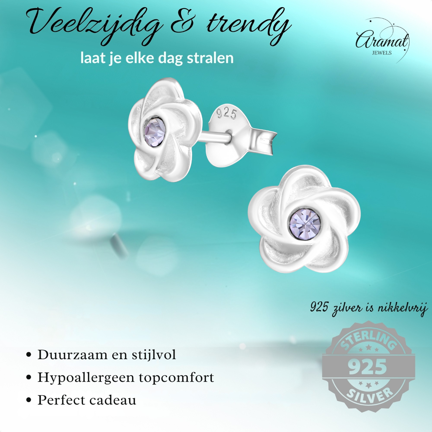 Apportez une touche de gaieté à votre journée avec ces boucles d'oreilles florales en argent d'Aramat Jewels. Le cristal lilas discret au centre crée un look frais, parfait pour les adolescentes, les enfants et les femmes qui aiment la couleur et le style. 🌸