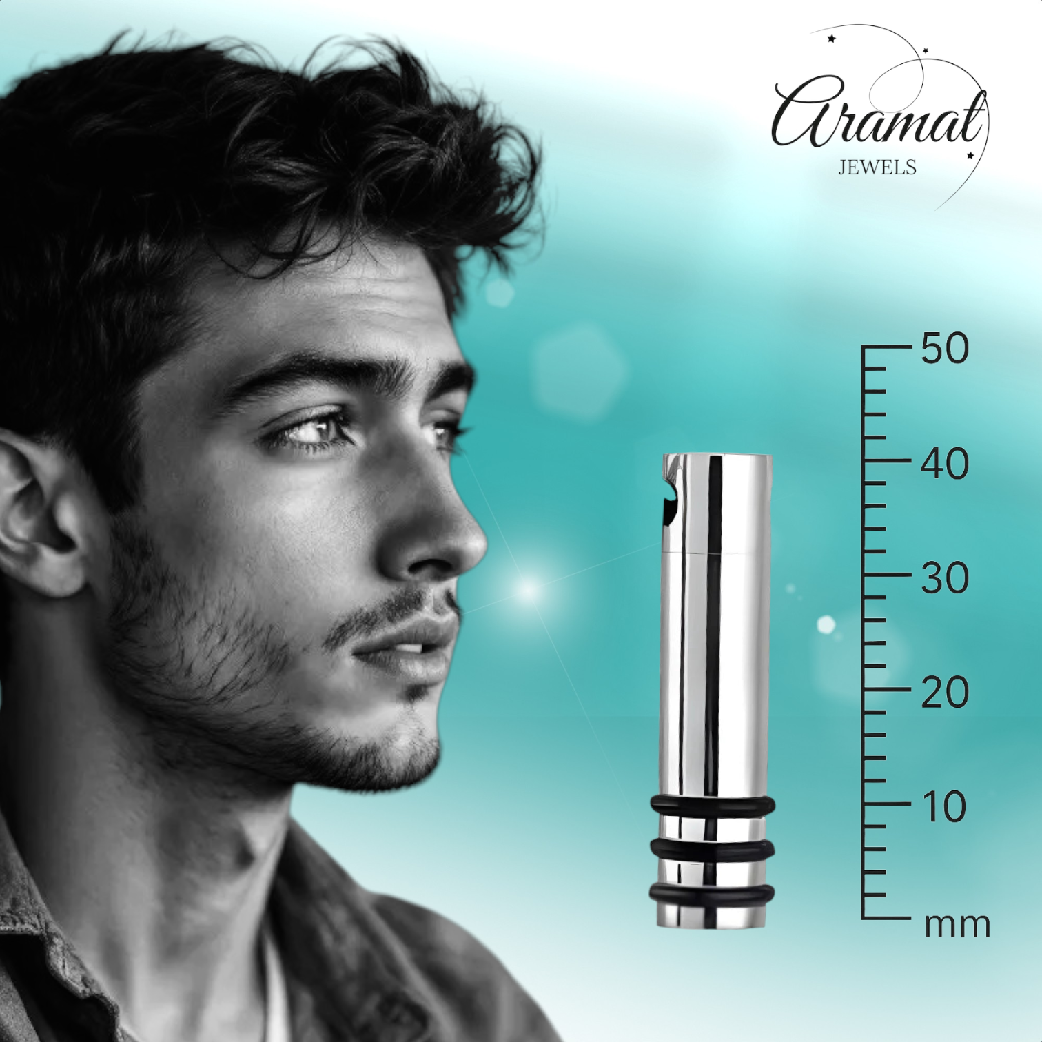 Looking for a stylish and powerful cremation pendant suitable for any occasion? This silver-colored steel ash pendant is cylindrical and subtly decorated with black rubber stripes . The design feels robust and timeless, suitable for both women and men. Discreetly carry a piece of your memory with you every day. 🖤