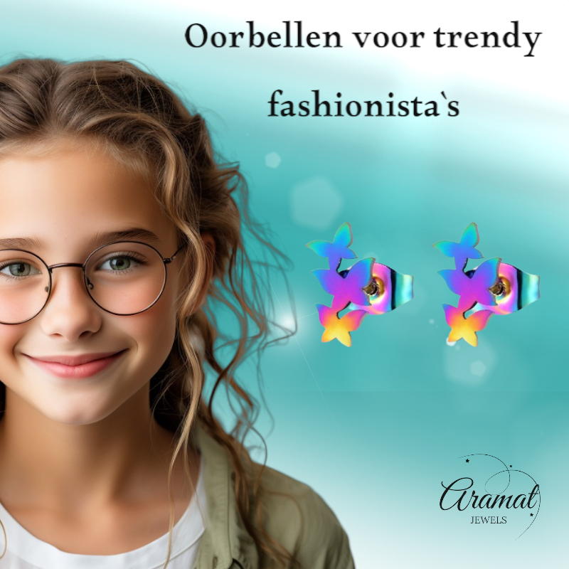 Add a touch of sparkle to your look with these multi-colored bar earrings from Aramat Jewels. Each stud , earring , and accessory is uniquely colored and features three small butterflies. Perfect for women, teens, and girls who love colorful jewelry with a playful detail 🌈.