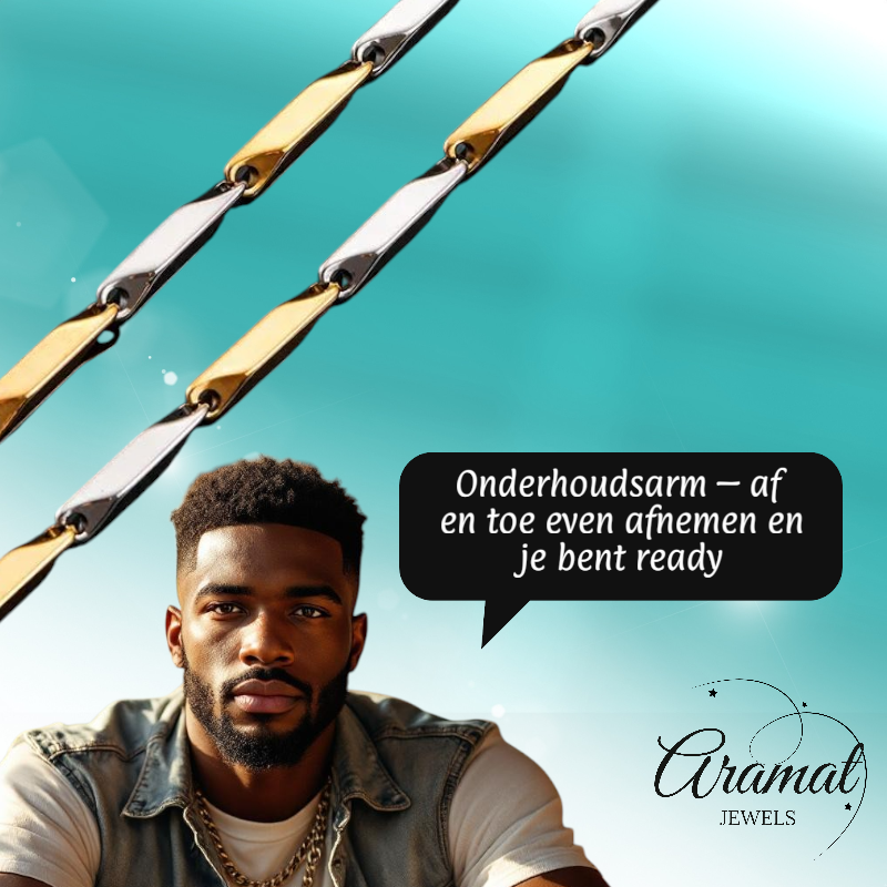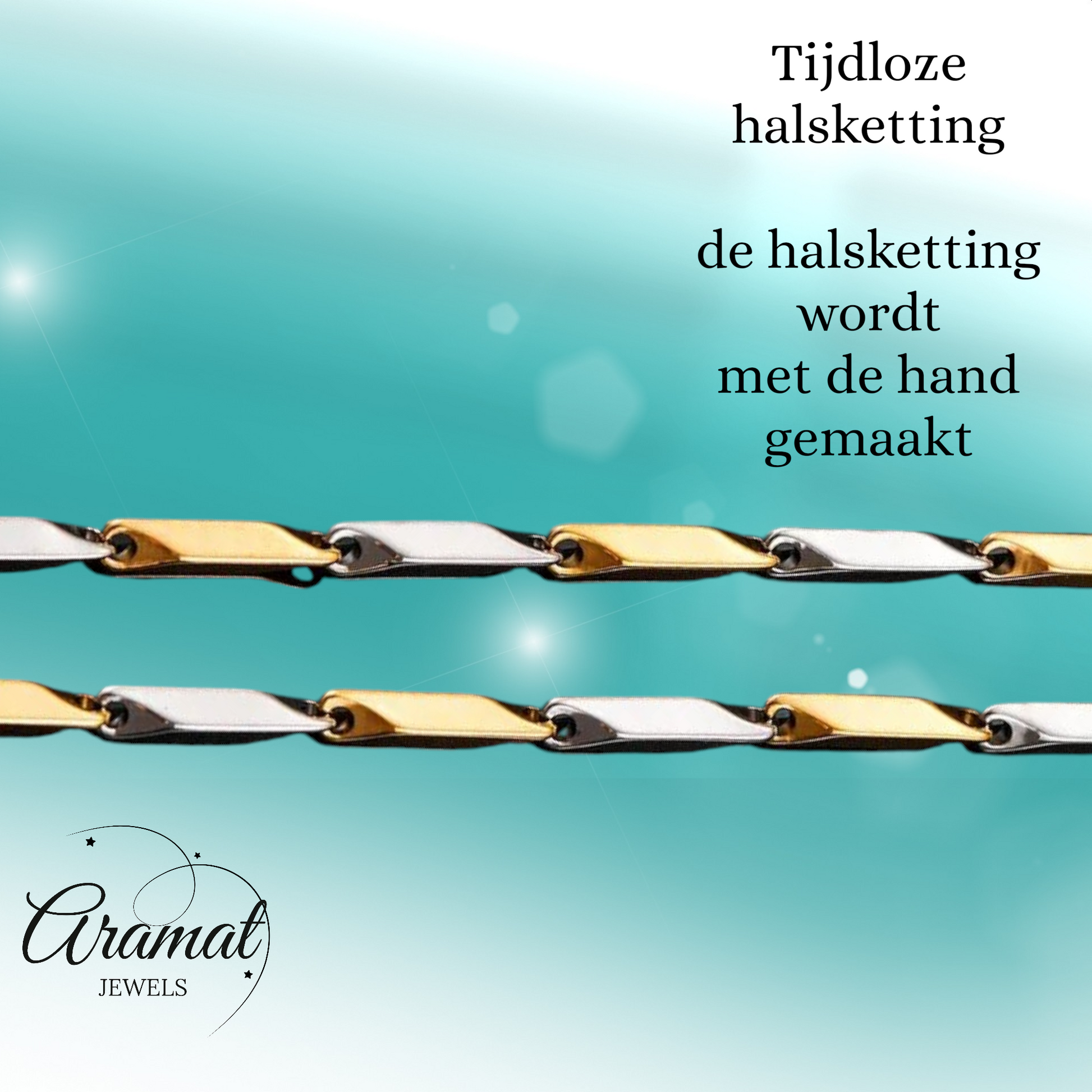 Looking for a modern and stylish necklace that perfectly complements any outfit? The Bamboo Necklace from Aramat Jewels, crafted from gold- and silver-tone steel , is the perfect choice for both men and women. This necklace features a two-tone design , with alternating gold and silver-tone links, making it a striking yet timeless accessory.