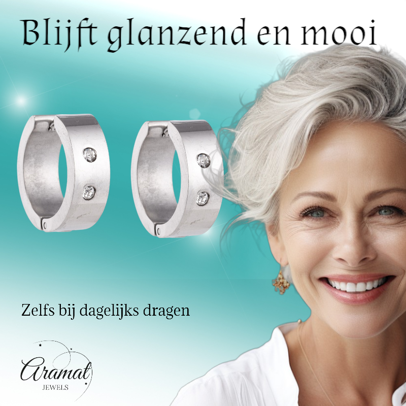 Order these wide huggie earrings with 2 crystals from aramatjewels.com and give your jewelry collection a stylish upgrade!