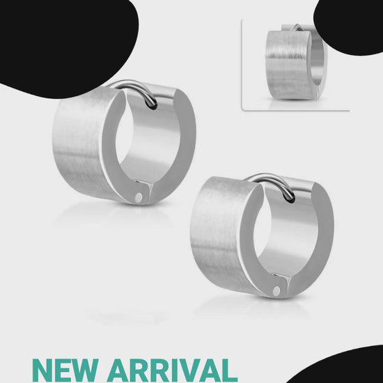 Wide Steel Hoop Earrings 14x7mm Matte Silver Color – Aramat Jewels® Huggies