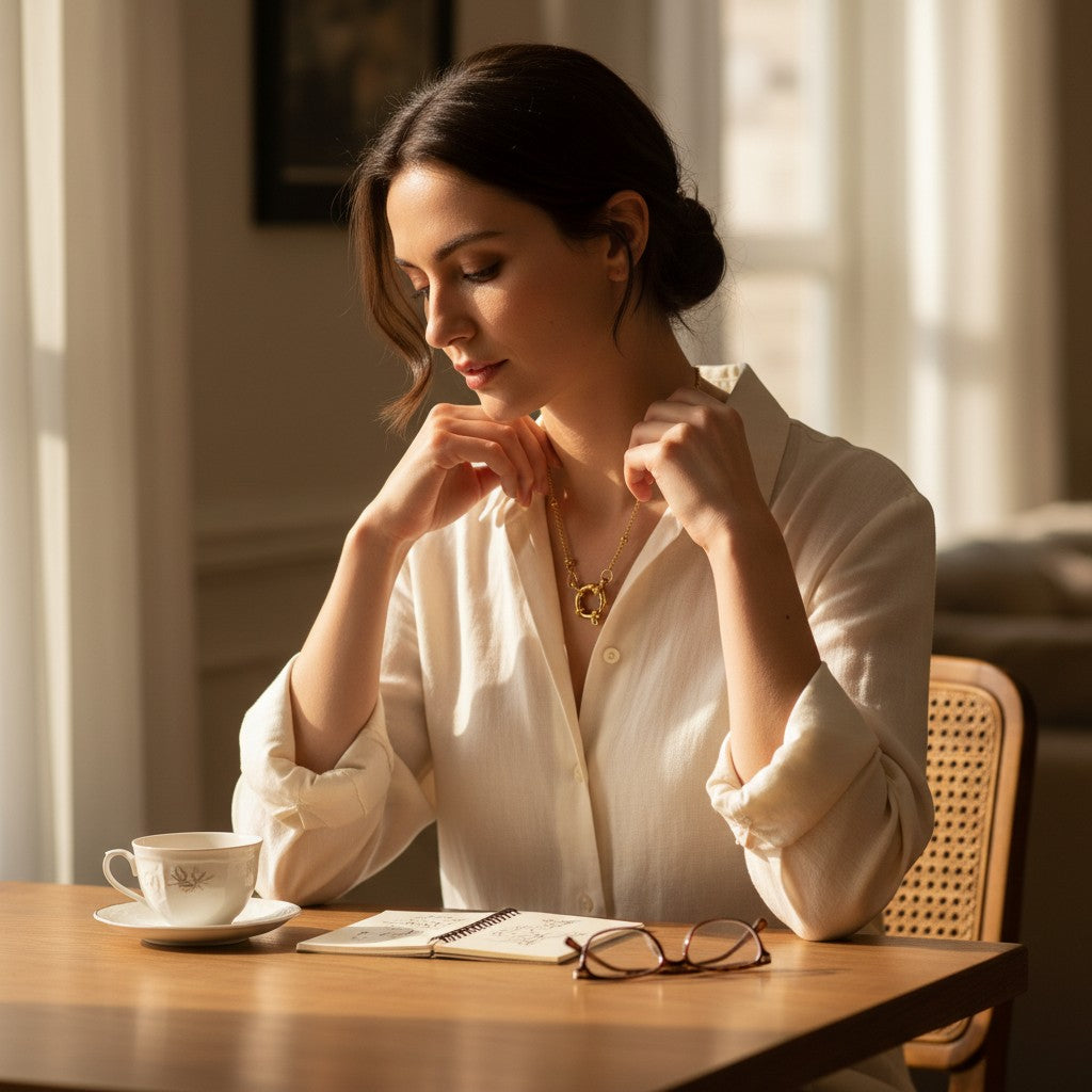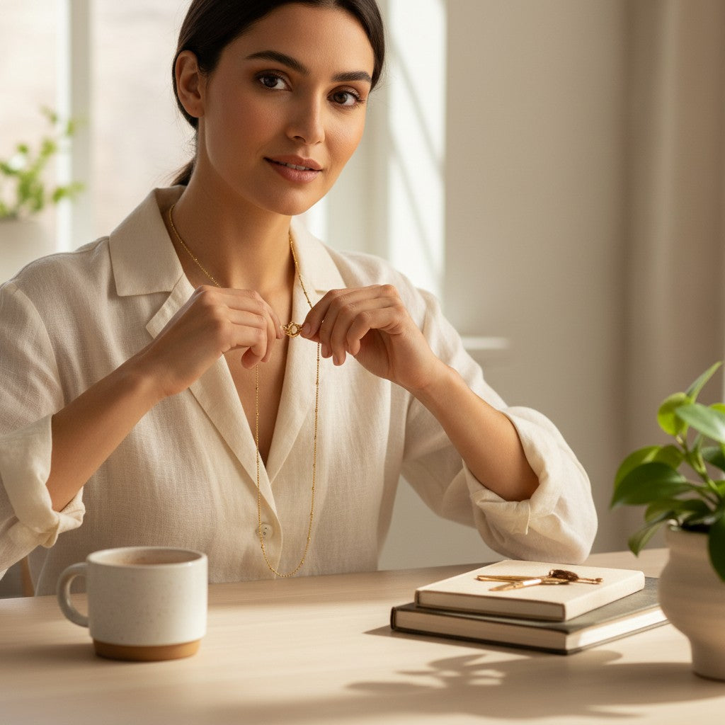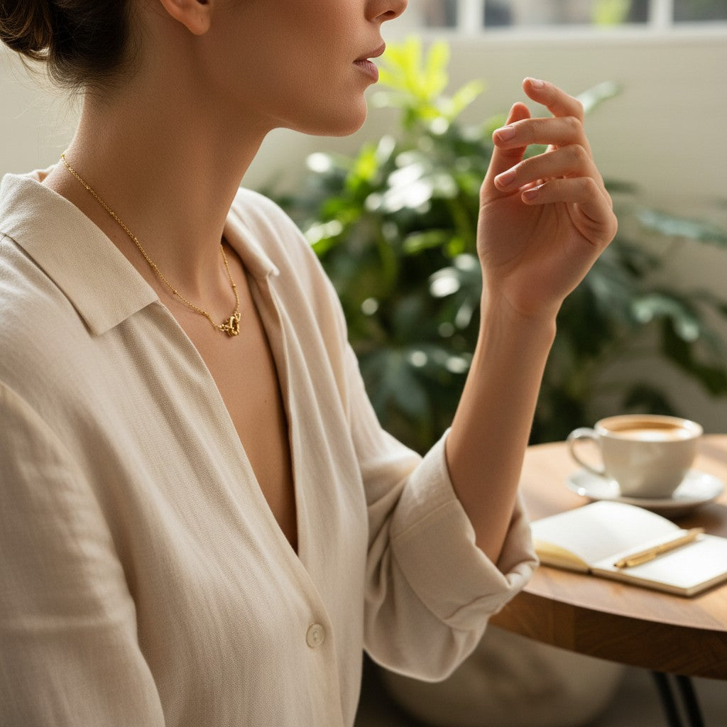 - How can I best care for this necklace? For a lasting shine, we recommend using a soft cloth and storing the necklace separately (to avoid scratches). Avoid direct sunlight and water to preserve its color and quality.