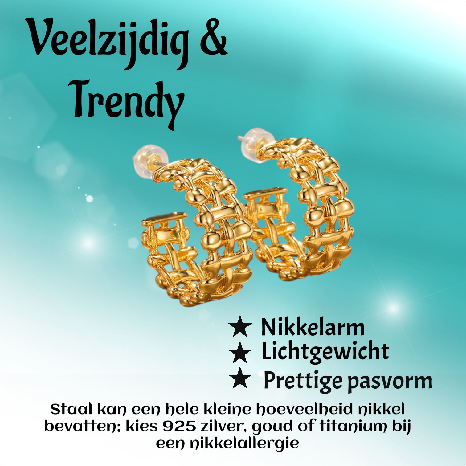 Goudkleurige Gevlochten Halve Oorringen - Artistiek Statement van RVS