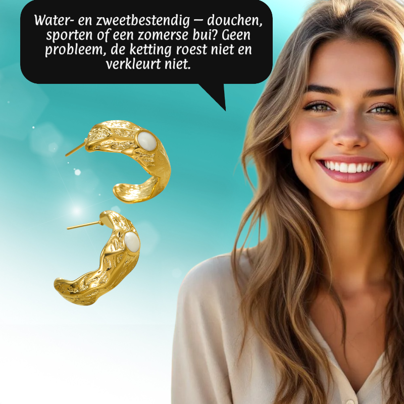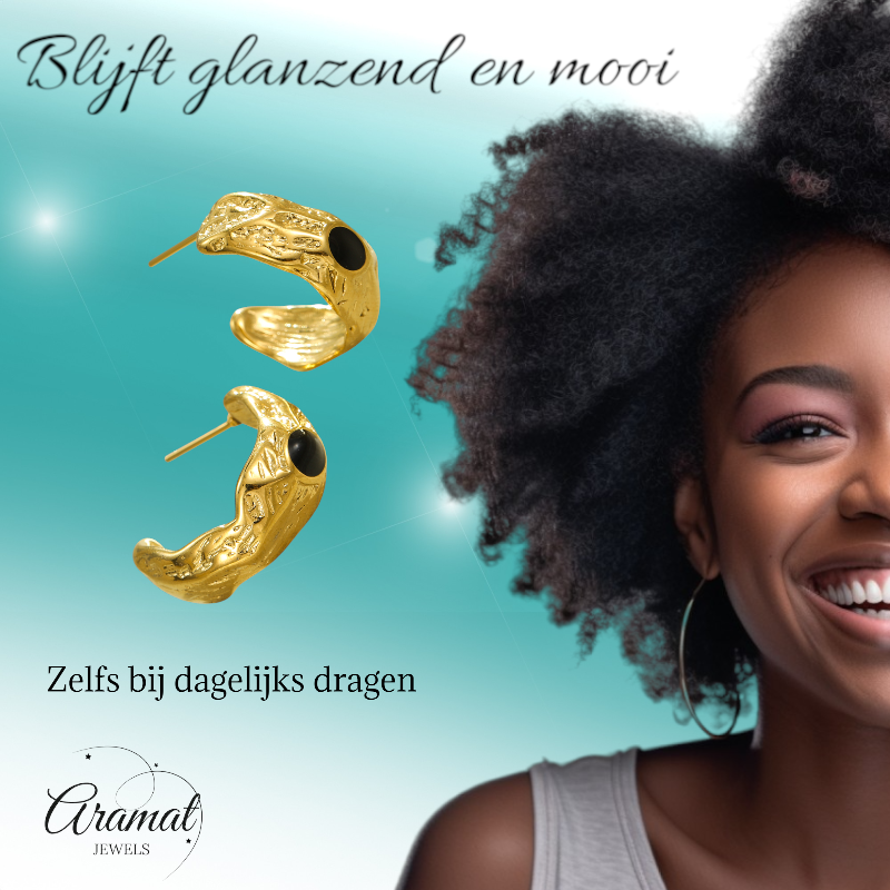 Deze oorbellen zijn vervaardigd van hoogwaardig staal (RVS) met een duurzame goudkleurige afwerking. Dit RVS sieraad is volledig waterproof en zal bij normaal gebruik niet verkleuren. Of je nu een actieve dag hebt, doucht of een feestelijke avond beleeft, de goudkleurige glans blijft behouden. Het is de beste keuze voor een dagelijkse stijl voor wie houdt van kwaliteit die jarenlang mooi blijft.