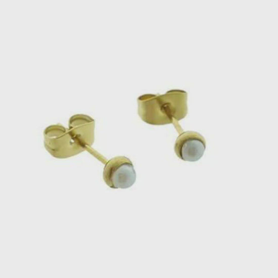 Add a touch of glamour to your outfit with these stunning gold-tone pearl earrings. Each pair is handcrafted with steel studs and 4mm synthetic pearls . The underlying white pearls have a timeless elegance and are a perfect addition to any outfit. Not only are these earrings beautiful, but they're also suitable for both women and children and make a great gift . Order today!