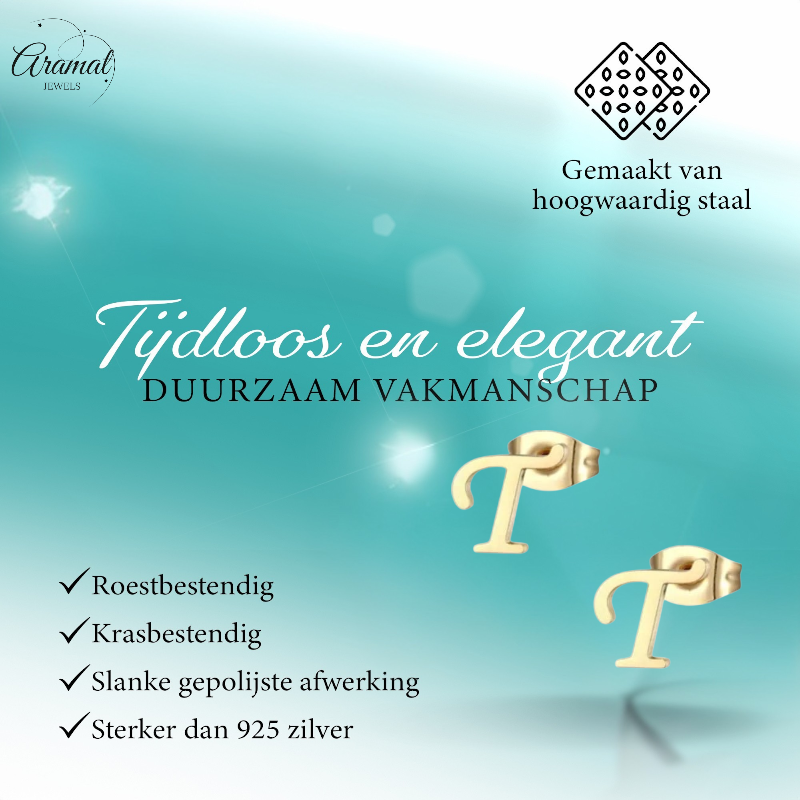 Looking for a personal gift or a playful accent for your look? These gold-colored stainless steel earrings with the elegant letter T are a real eye-catcher for all ages! 🌟 Ideal as initial studs for your own name, that of your child, loved one, or a loved one. Made of low-nickel stainless steel – so also suitable for sensitive ears (for nickel allergies, we always recommend 925 silver or titanium ).
