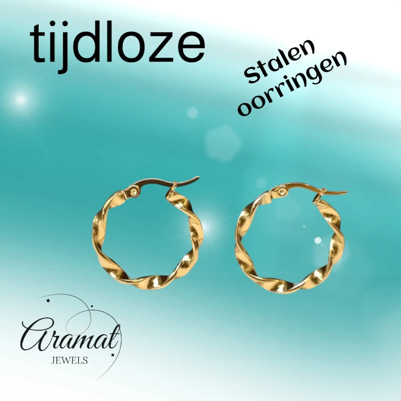 Bent u op zoek naar een bijzonder sieraad dat uw outfit net dat beetje extra geeft? De Gouden Glamour Wokkeloorringen van Aramat Jewels® zijn echte statement pieces. Dankzij de unieke gedraaide vorm, ook wel de 'wokkelvorm' genoemd, vangen deze oorbellen het licht op een speelse manier. Dit zorgt voor een prachtige schittering bij elke beweging die u maakt.