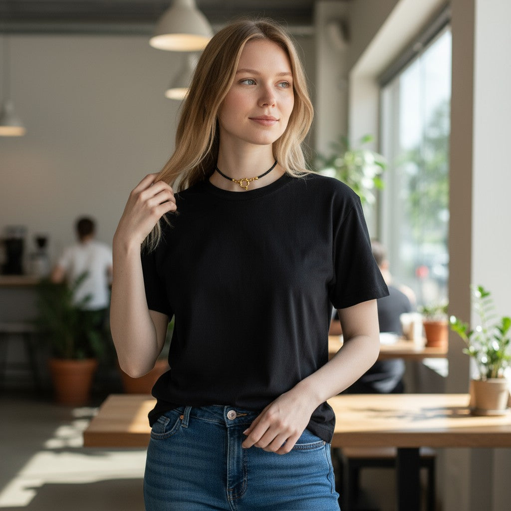 Wear it solo over a T-shirt or layer it with other sleek necklaces. Pair it with gold-tone jewelry for a calm, harmonious ensemble. Want to see more styles? View all necklaces ๐ฟ.
