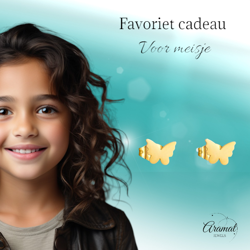 Gold-colored butterfly stud earrings 11x8 mm – elegant and graceful 🦋