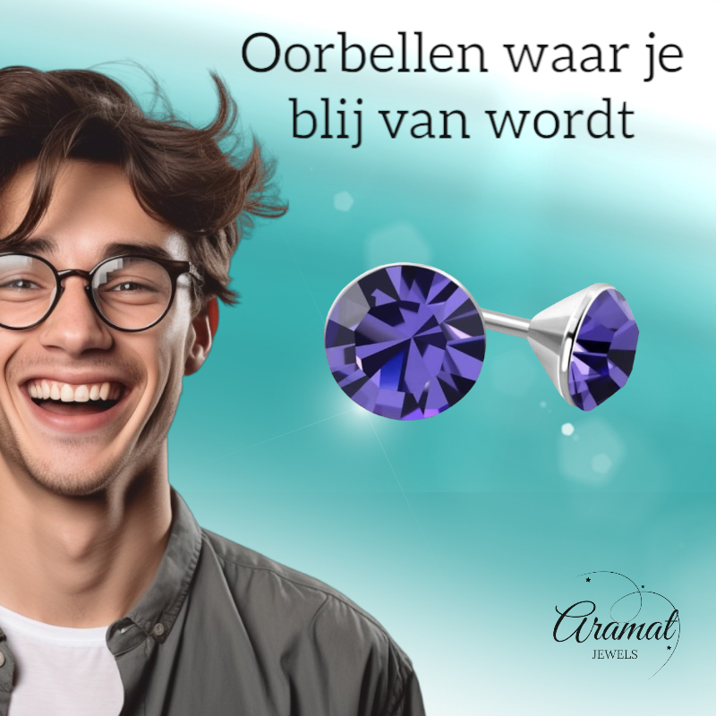 Looking for a soft color with a playful touch? These silver-colored mini earrings with a violet crystal are small yet striking 💜. Thanks to their 3mm size, they're perfect for first, second, or third ear piercings – for both young and mature styles.