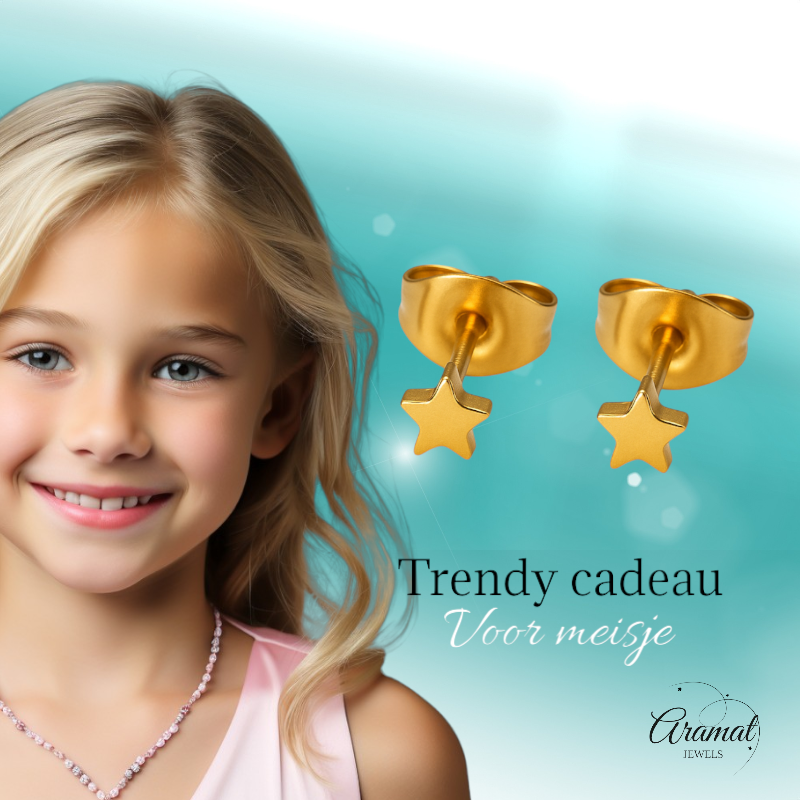 Mini star stud earrings gold color steel – 3mm