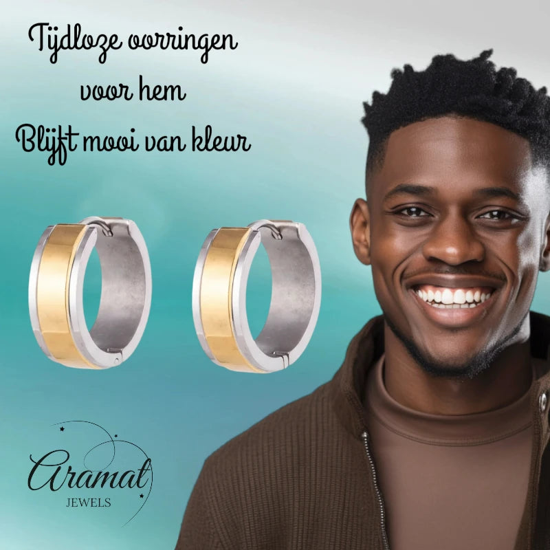 Want to order these two-tone stainless steel huggie earrings with a wide gold stripe? Add this shiny and stylish unisex addition to your collection today!
