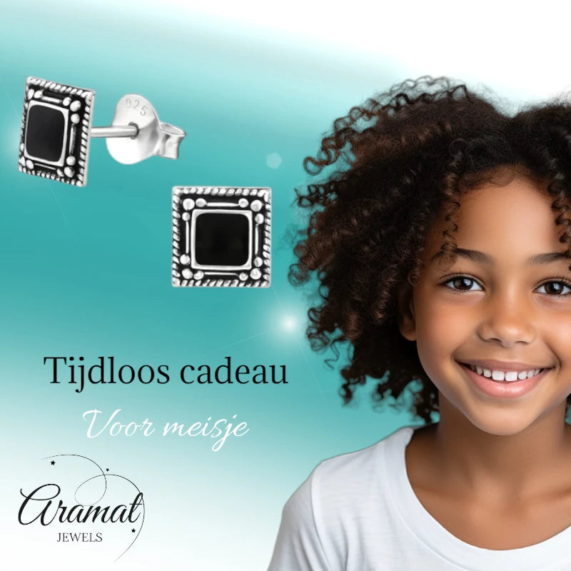 Crafted from high-quality 925 sterling silver, the earrings are oxidized (blackened) to accentuate the beautiful details of the Balinese design. A deep black enamel is incorporated within the 6mm square frame, creating a striking contrast with the oxidized silver.