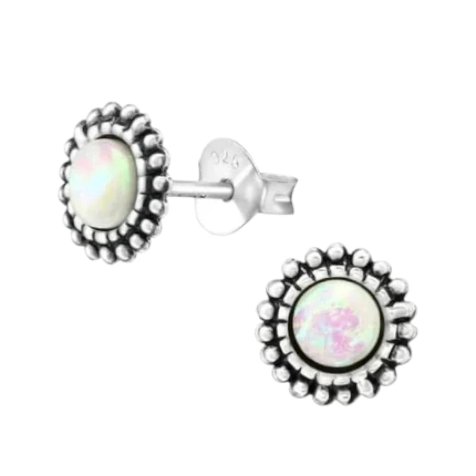 🤍 925 Silver Bali Stud Earrings – White Opal (8mm)