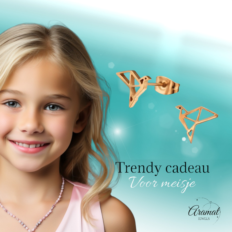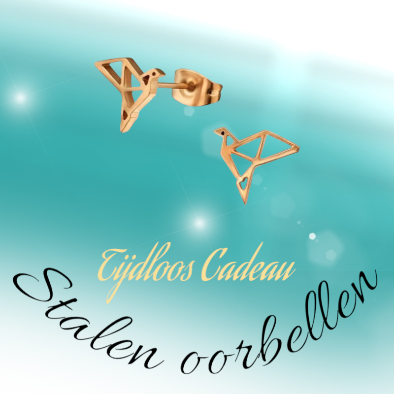 These 9mm rose gold-tone stainless steel earrings , shaped like an openwork origami bird, combine lightness and elegance. The geometric design symbolizes freedom and refinement β ββideal for teens, women, and men with an eye for detail. π