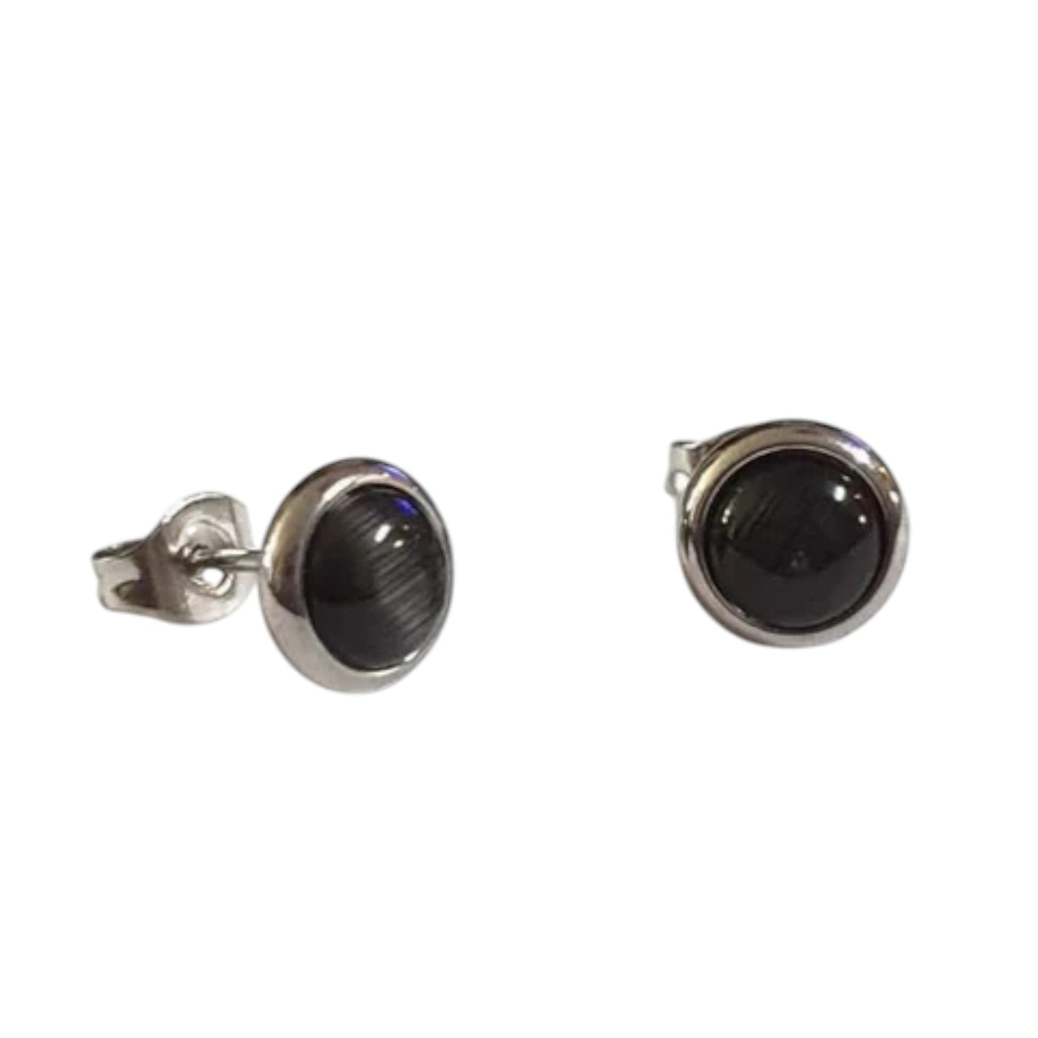 Stainless Steel Cat Eye Earrings 8mm – Black