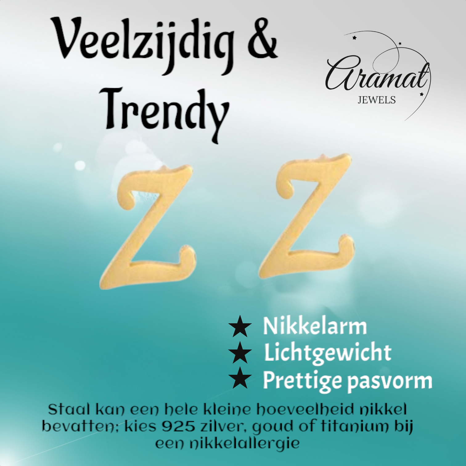 The Letter Z earrings are perfect as a personal gift , for yourself, or as a unique surprise. Combine these initials in multiple earholes or wear them with a necklace for a unique look. Mix them with gold-colored earrings for a trendy ear party!