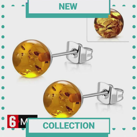 Stainless Steel Bead Earrings Amber Acrylic 4-8mm - Warm Stud Earrings