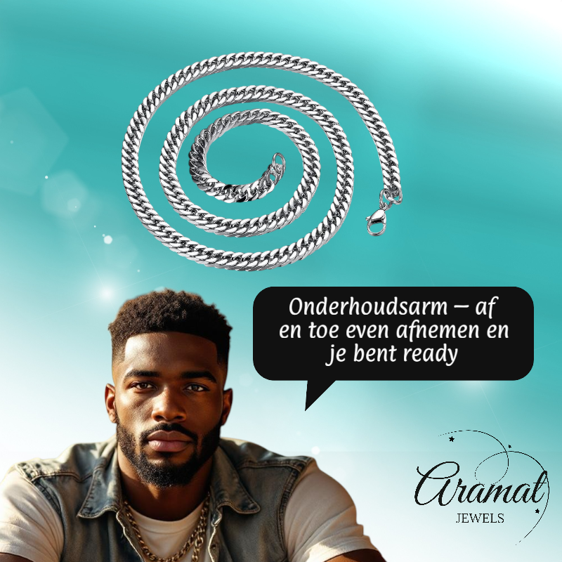 Steel is a material known for its strength and durability. It resists wear and tear and retains its color and shine, even with daily use. This makes the steel Curb Chain necklace from Aramat Jewels® ideal for anyone looking for a piece of jewelry that stays beautiful without requiring much maintenance.
