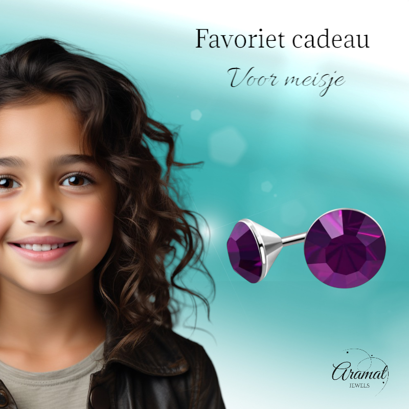 Want to add a subtle pop of color to your ear? These silver-colored stud earrings with a 3mm purple crystal are small in size but big in look 💜. Perfect for everyday wear, suitable for all ages – and ideal for multiple ear piercings.