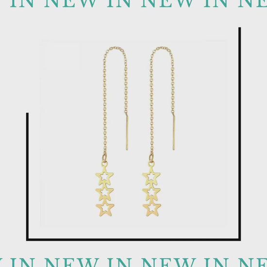 Beautiful Pull-through Earrings With Chain 3 Stars Gold-Colored 🌟🌟🌟