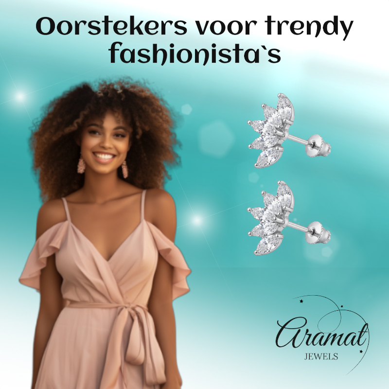 Bij Aramat Jewels streven we naar een duurzame wereld. Deze oorbellen hebben een afmeting van ca. 10x8mm. Omdat productfoto's vaak zijn vergroot om de details van de zirkonia's te tonen, raden we aan om de maat even te controleren met een liniaal of de maattabel. Zo weet je zeker dat ze perfect passen en beperken we samen de CO2-uitstoot van onnodige retouren.