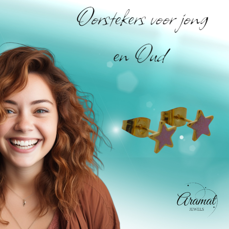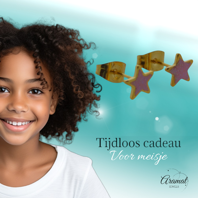 These gold-colored stainless steel star studs with pink enamel and sparkling glitter add a cheerful touch to any look. Ideal as children's studs or subtle women's earrings , and perfect as a gift ! 🎁✨