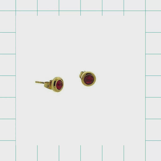 Gold-colored Round Earrings with Red Zirconia 6mm - Aramat Jewels