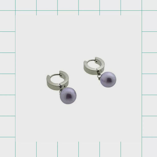 Stylish Steel Hoop Earrings with Lilac Pearl – Aramat Jewels® Women's Huggies