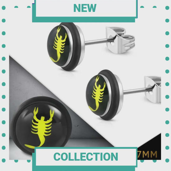 Give your look a bold and eye-catching touch with these 🌟 Scorpio Round Stud Earrings 🌟. Crafted from high-quality stainless steel , rubber, and acrylic, these studs feature a stunning silver finish. The yellow and black acrylic adds a vibrant pop of color to the scorpion shape. Suitable for both men and women who love to express their unique style. Don't worry about fading, they'll stay beautiful!