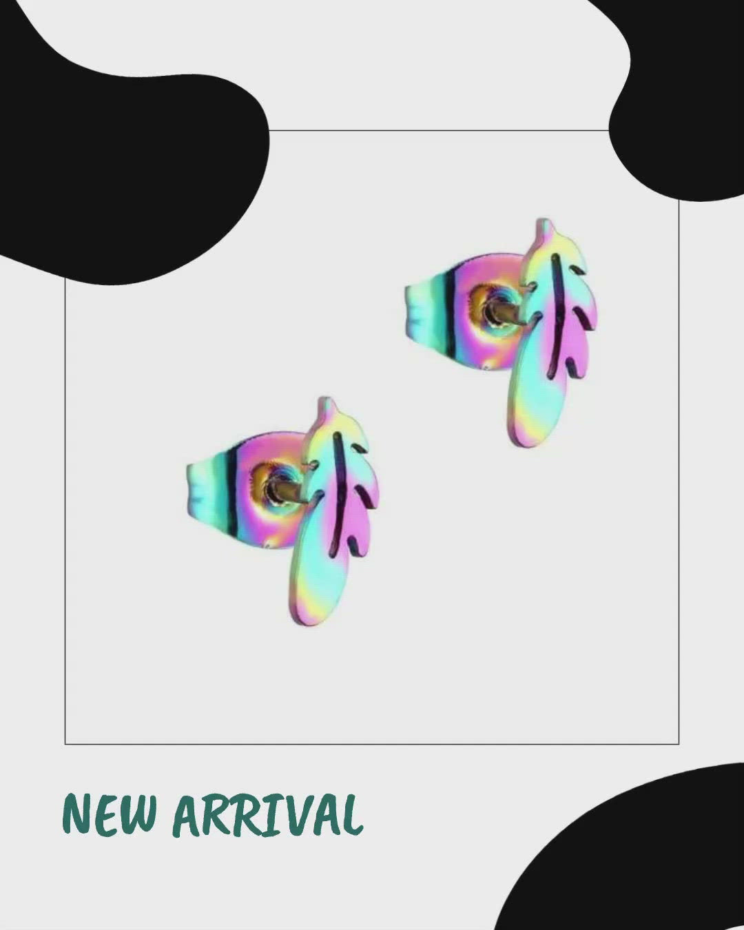 Stainless Steel Feather Earrings Various Colors 10-15mm - Feather Stud Earrings