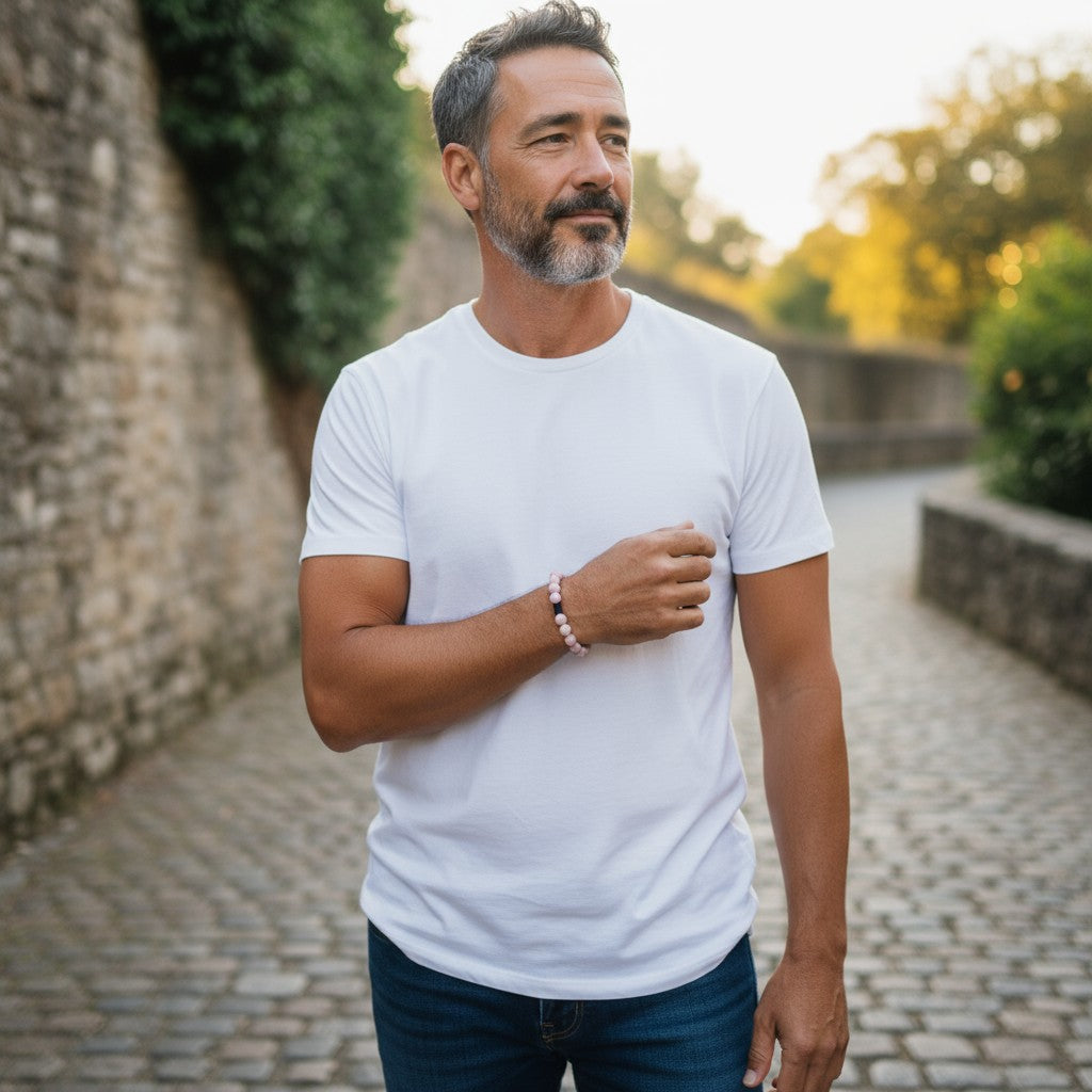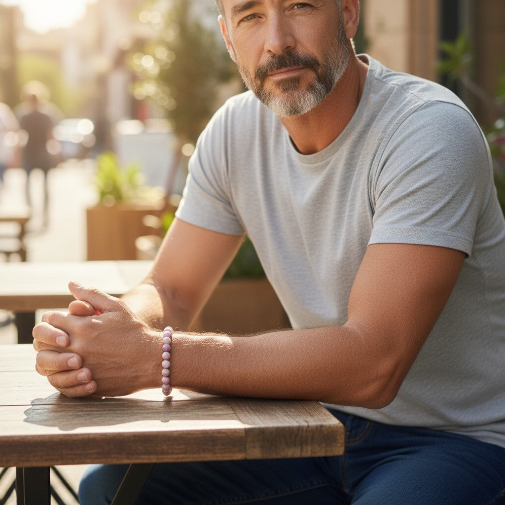 Rhodochrosite is known for its ability to release emotional blockages and promote well-being. Wearing this bracelet can help reduce stress and bring a sense of calm.