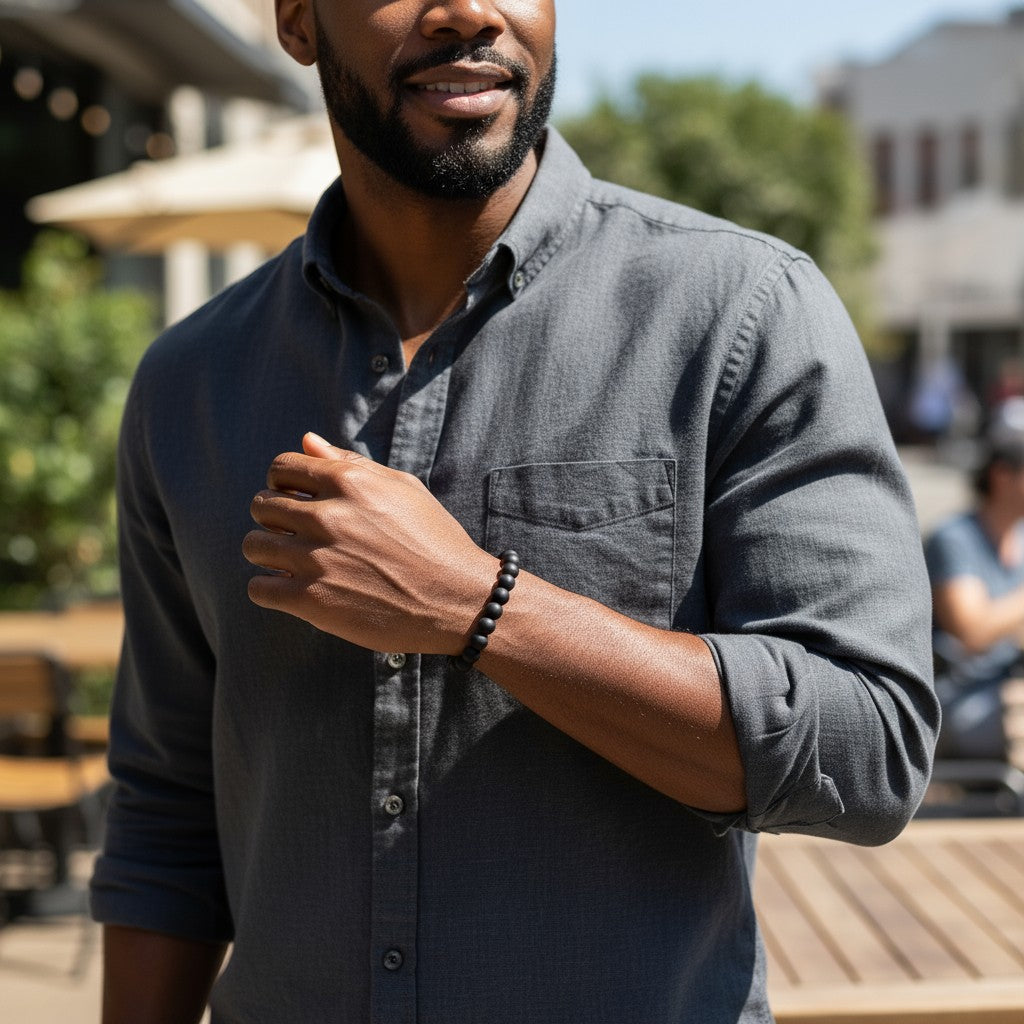 How do I care for my matte black stone bracelet? Avoid prolonged exposure to water and clean the bracelet regularly with a soft cloth to maintain the matte finish.
