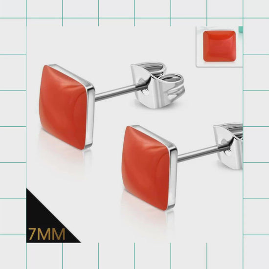Square Orange Earrings in Stainless Steel