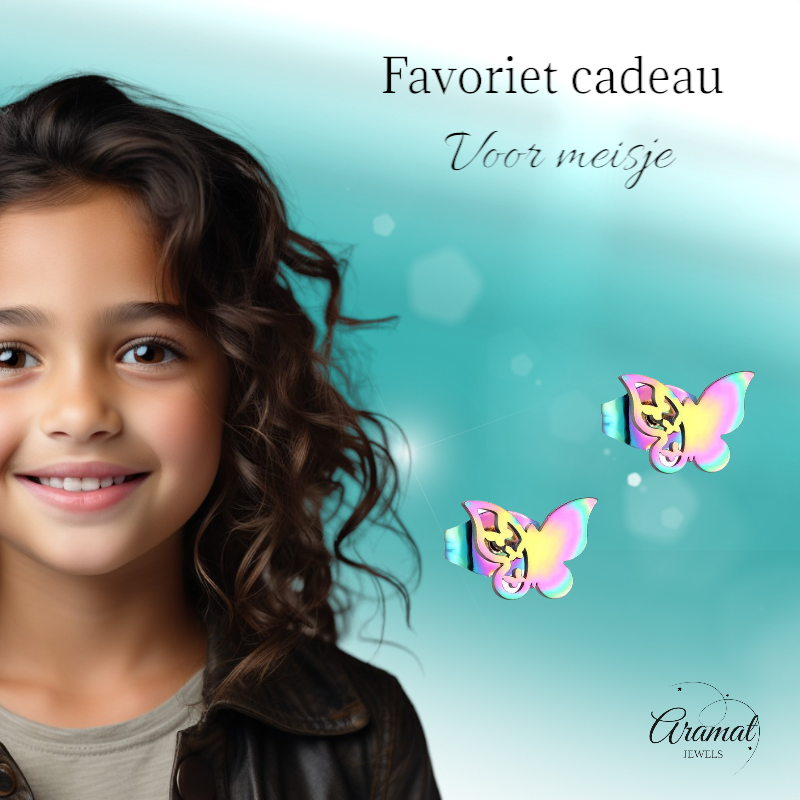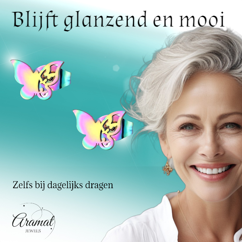 Add color to your life with these rainbow-colored steel butterfly earrings from Aramat Jewels. Featuring a single openwork wing adorned with three tiny butterflies, each stud , piece , and earring is unique and the perfect accessory for women, teens, and girls who love playful, colorful jewelry . 🌈